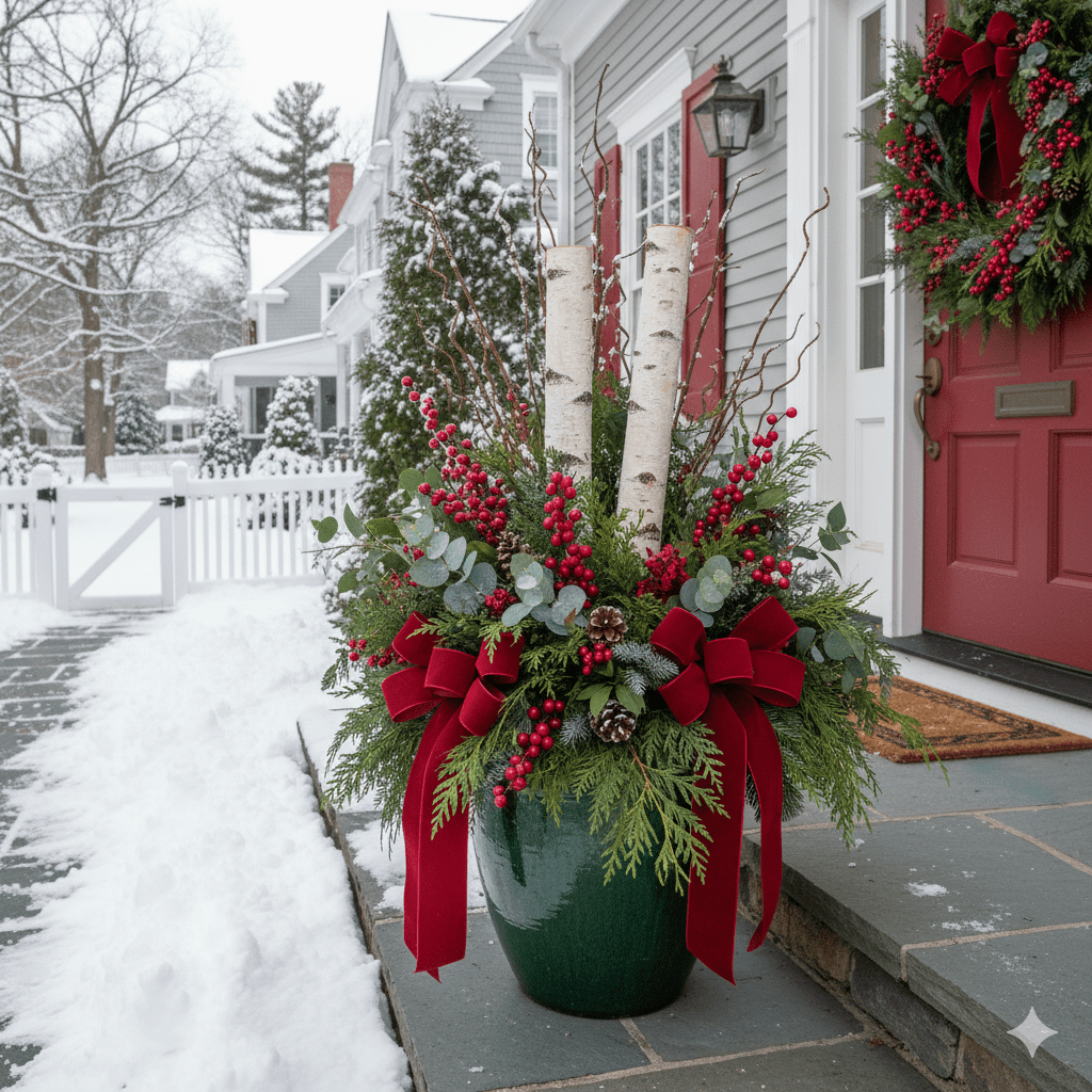 With just a few fresh greens and a little creativity, you can transform any container into a lasting winter display. Mixing textures, colors, and natural accents gives your porch or entryway a festive touch that carries beautifully through the holidays and beyond.